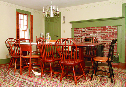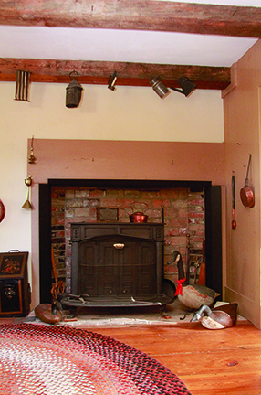 At 2,776 square feet altogether (addition/kennel included) the four-bedroom home makes a great haven for a family, and retains a number of its original features, such as exposed ceiling beams, wide-pine or Douglas fir flooring, wall paneling, and four-panel doors with vintage hardware. There are four decorative brick fireplaces, three of which have wood stoves that very economically augment oil heat, or even make it redundant. (The addition has a separate furnace.)