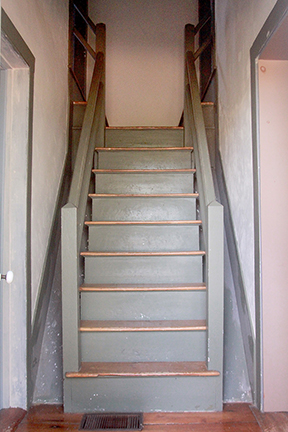 Up the pleasantly symmetrical, “good morning” stairs, are two good-sized bedrooms, in classic Cape fashion. One has a large walk-in closet; the other, a deep walk-in, plus built-in drawers, and access to a primarily daylight walk-in attic, about 25 feet deep.