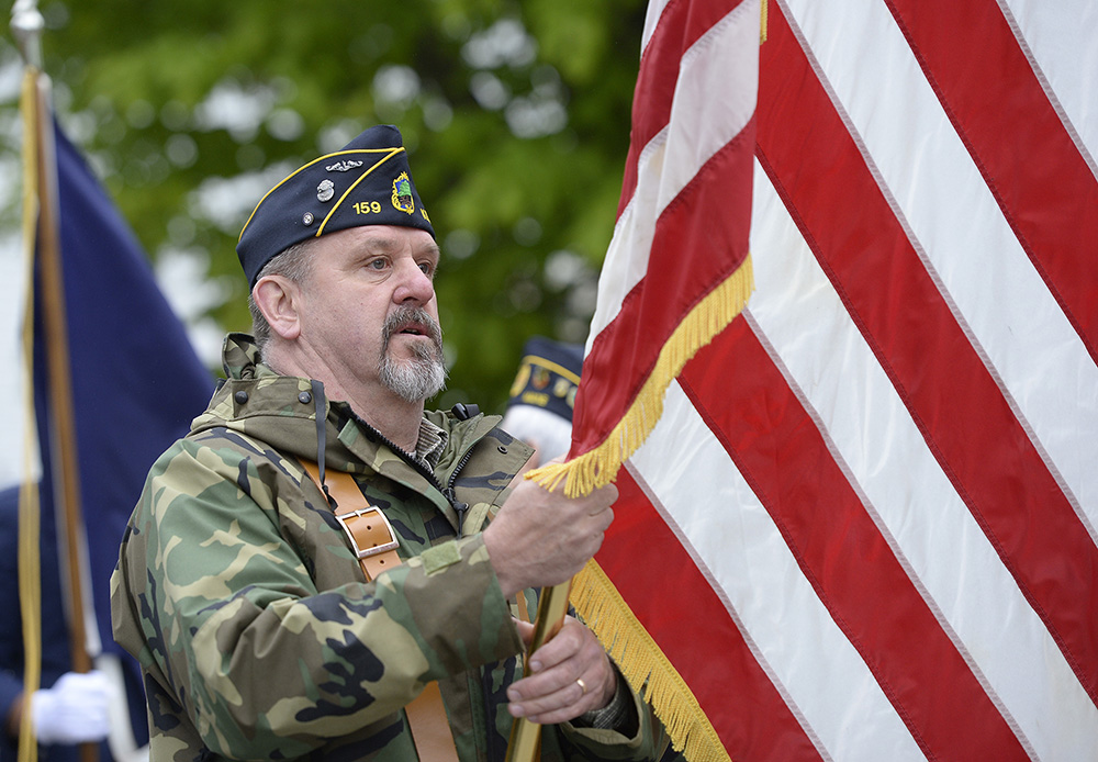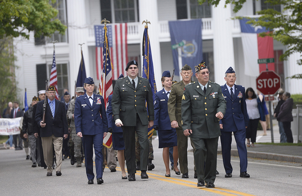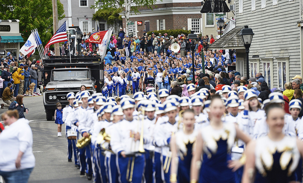 KENNEBUNKPORT — Hundreds of people, many bundled in rain gear and blankets, waved flags and paid tribute to American soldiers killed in action at the town’s annual Memorial Day Parade.