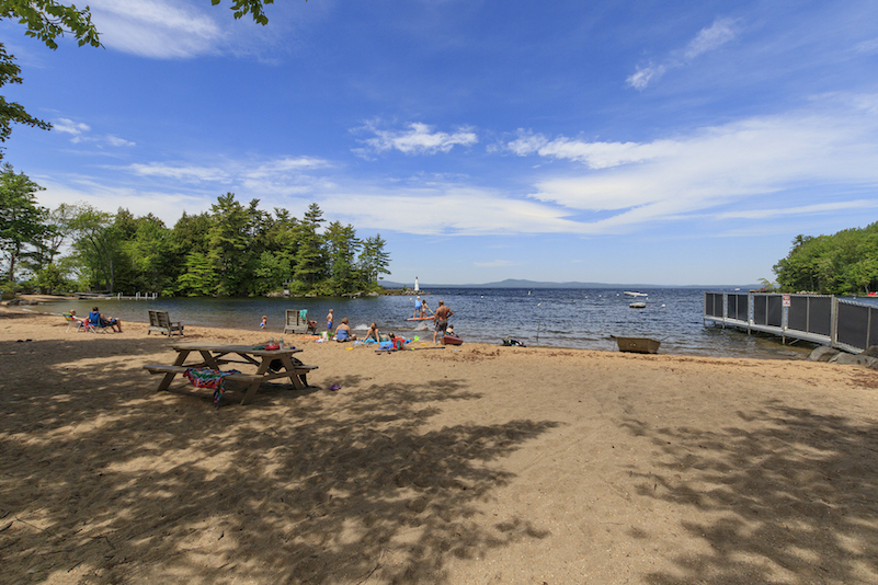 The island is ringed by sandy beaches, 14 of them, so you can pick your view and even your weather, to a degree. Beach no. 6 (aka Cocktail Cove) looks far across to Sebago’s western shore. Long Beach, where there’s a marina, faces southwest. Recreation Beach is one of several that are east-facing, towards the Cape, Frye’s Leap, and Jordan Bay.