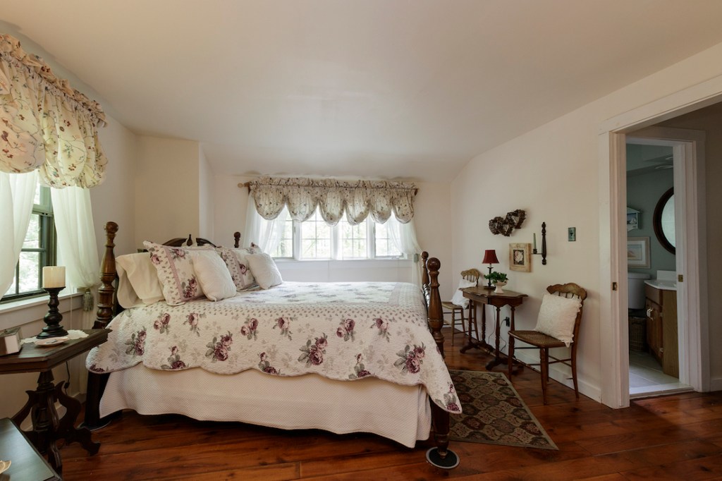 Upstairs, which is freshly painted, floors are wide pine. Bedrooms two and three are served by a full bath with tub; the master has an en-suite bath and a walk-in closet.