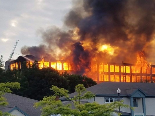 More than 100 firefighters from 20 communities helped to battle the blaze, which attracted hundreds of people who recorded the fire on their phones and shared images on social media.