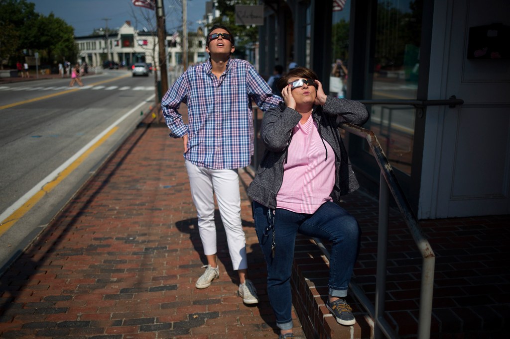 Many Mainers simply stepped outside their homes and offices to watch the event with special “Eclipse Shades” or homemade contraptions that afforded safe viewing.