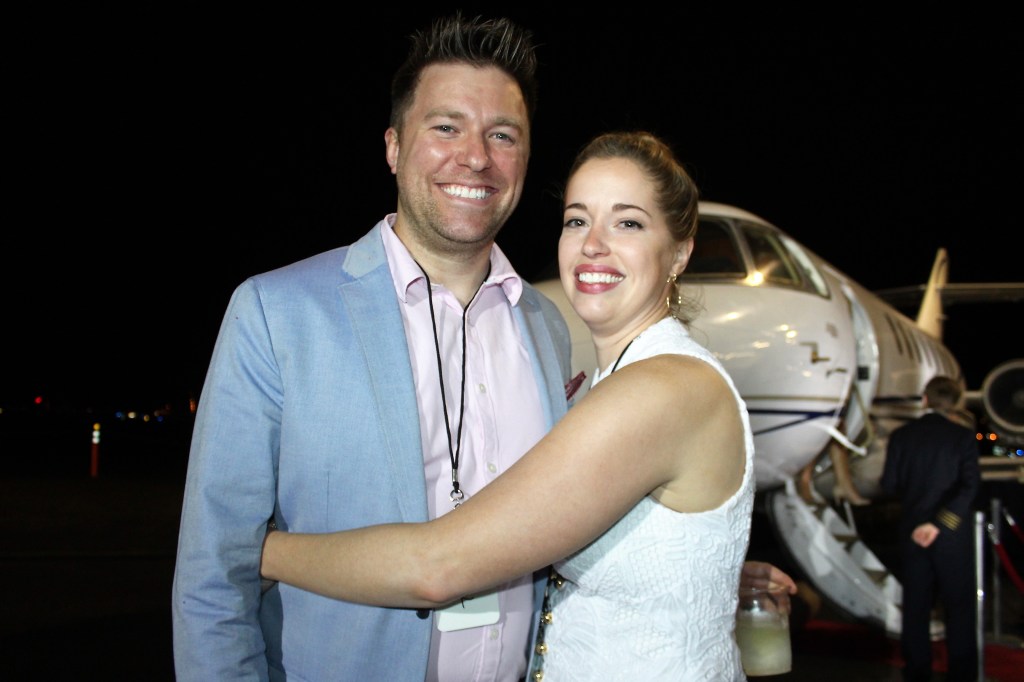 The winners of the jet-setting trip were Adam DeMerchant, who gave the trip to his sweetheart Brandy Egan and her friend Elaine Sweet, and Neil Suchecki, who brought his fiancé, Jane Apple. These winners of the drawing were joined by a few spontaneous and generous souls who bid on the remaining seats in the Hawker 1000.