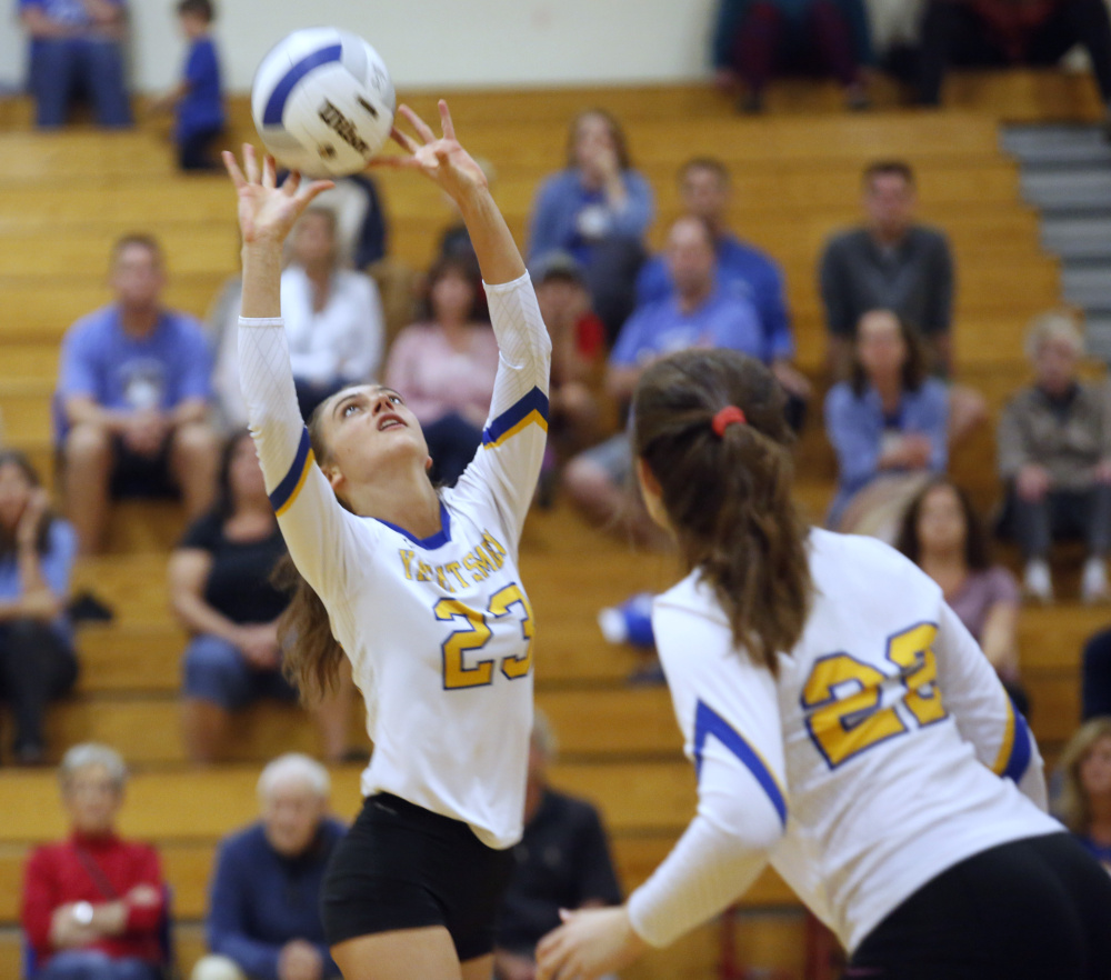 The score was tied four times in the third set and the lead changed hands twice before Falmouth scored eight of 10 points to open up a 22-15 lead.