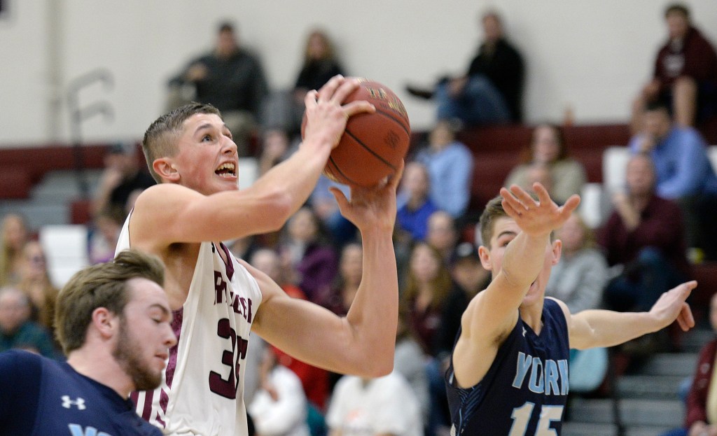 York opened the game looking like it was ready to give Greely a tussle. Riley Johnston and Will MacDonald (team-high 11 points) both hit open 3s. Chris Cummins, Riley Linn and MacDonald scored going to the basket and York trailed just 17-12 after a quarter despite giving up Kane’s strong two-handed dunk.