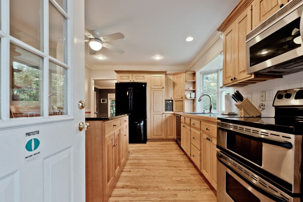 And the first floor? A sweet, newer kitchen, with black-and-stainless appliances and granite surfaces, including island; twin, versatile front “parlors” (one now a music room); a big living/dining room with a wood-burning fireplace, and full-view doors to the porch/patio; and, a master suite that makes one-level or multi-generational living an option.