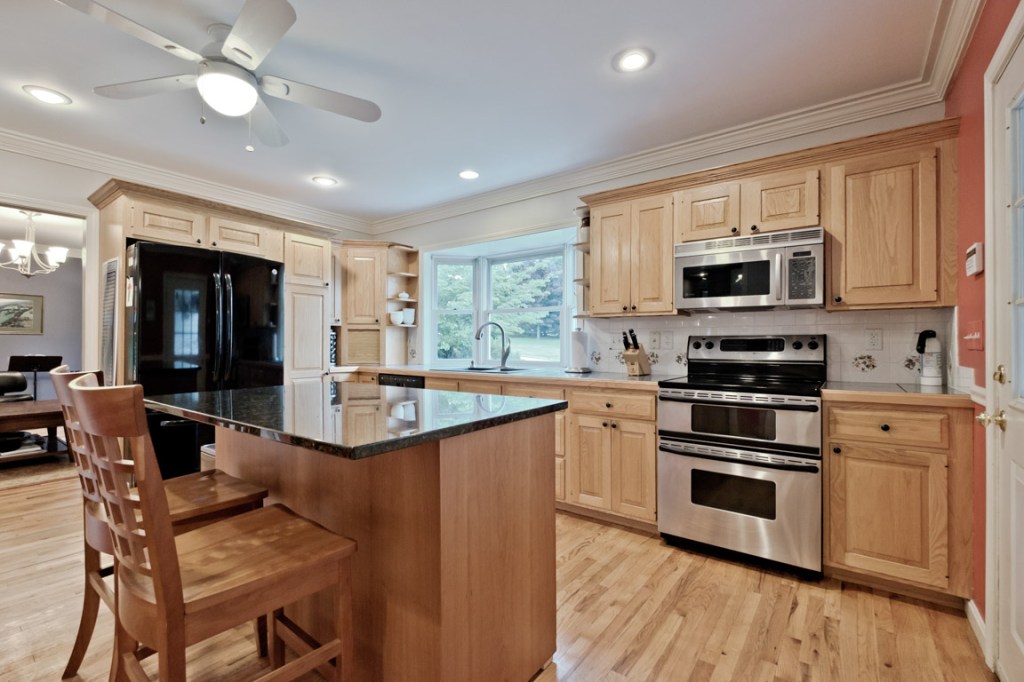 Equestrians, and other animal-lovers, take note: In addition to the attached three-vehicle garage (the John Deere tractor will convey) there’s a 24-foot-by-36-foot detached barn with two horse stalls and plenty more space for critters.