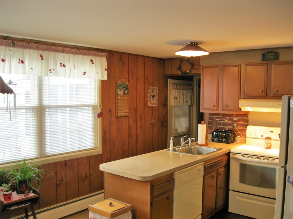 The basement level provides three rooms, each of which has some daylight. The large utilities room (the furnace is newer, as is the oil tank) has a great workshop, not to mention plenty of storage. The big, applianced laundry room has storage, too. But the highlight is probably the spacious, paneled and carpeted recreation room – an ideal lady-or-man cave, playroom, media room, etc.