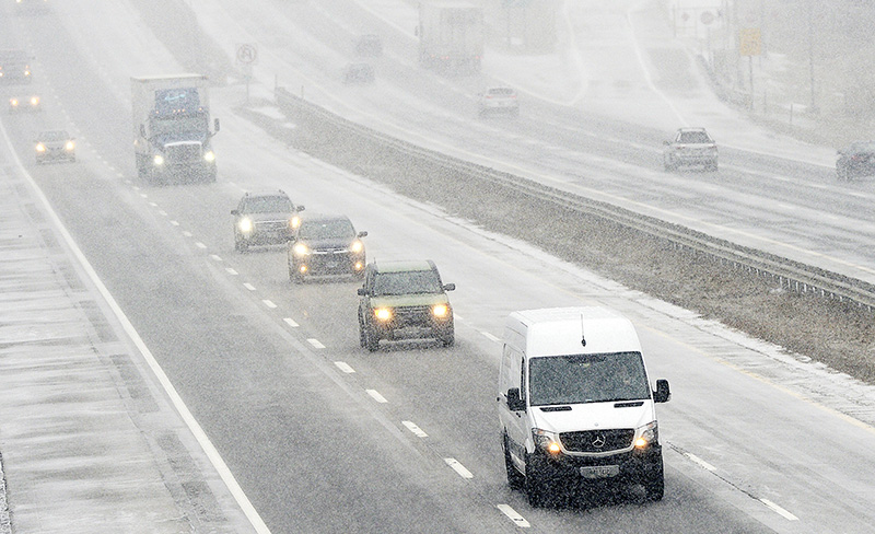 Heavy snow began falling in Greater Portland by shortly after noon and roads were quickly coated. Driving conditions were poor during the Wednesday evening commute.