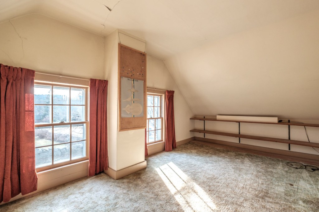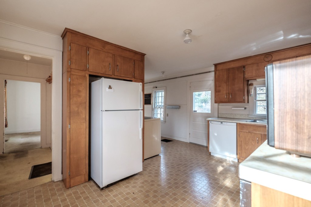 The home measures 2,332 square feet; has one full bath, on the first floor, with a tub; and has nine total rooms, a number that imparts floor-plan flexibility. The eat-in kitchen’s appliances are dated but do include a gas range.