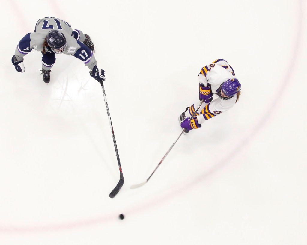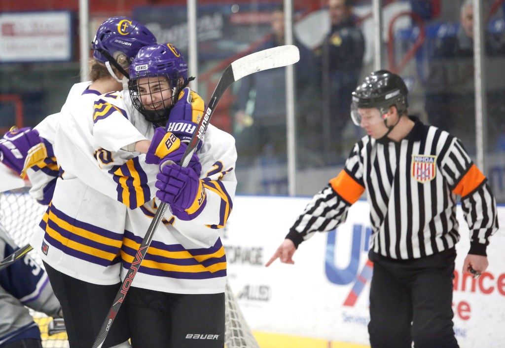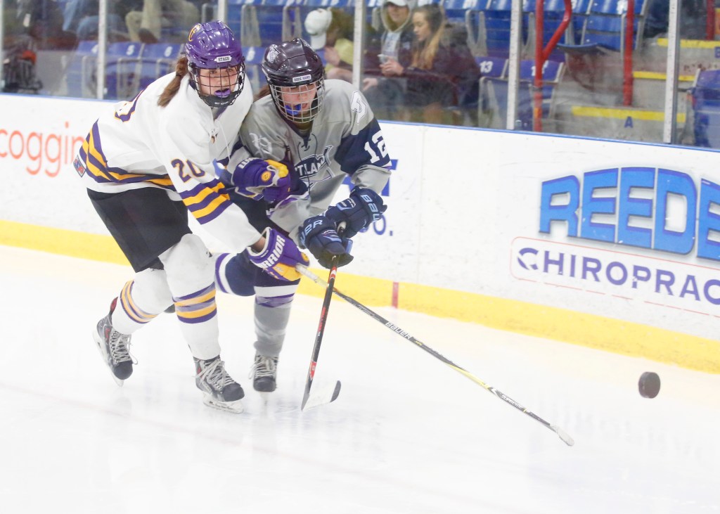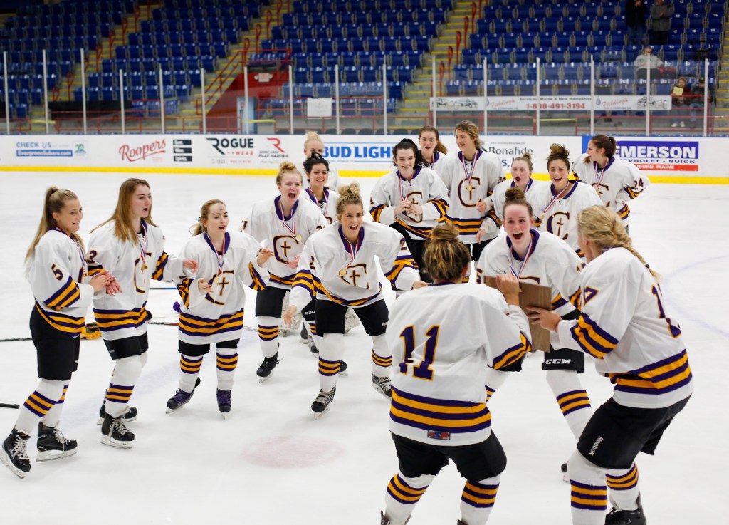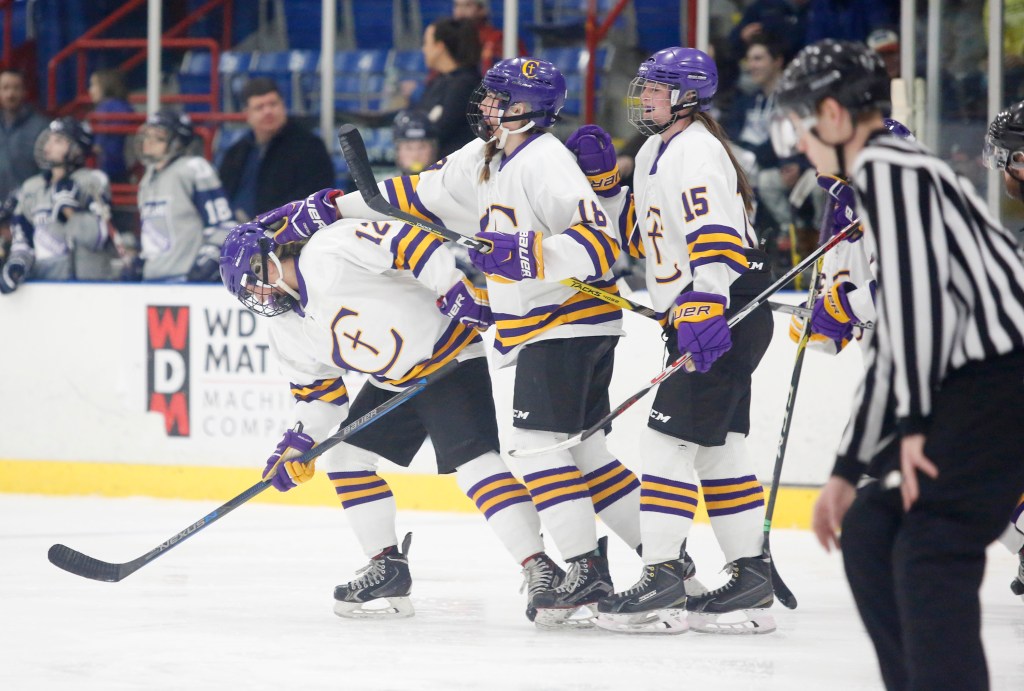 In the third period, McCauley scored from Lamontagne during a scrum at 5:12, Lucia Pompeo added an unassisted goal less than two minutes later and Olivia Adams scored from Caitlin Wolff at 9:52.