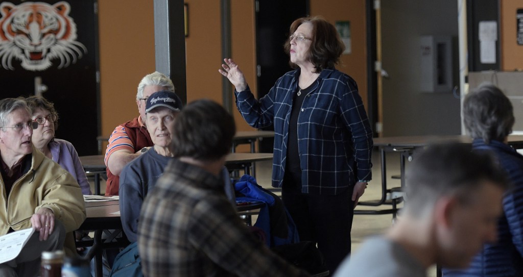 At Cony High School, about 45 Augusta Democrats gathered in the cafeteria in response to calls from caucus chair Donna Doore, who is also seeking re-election to the House in District 83.