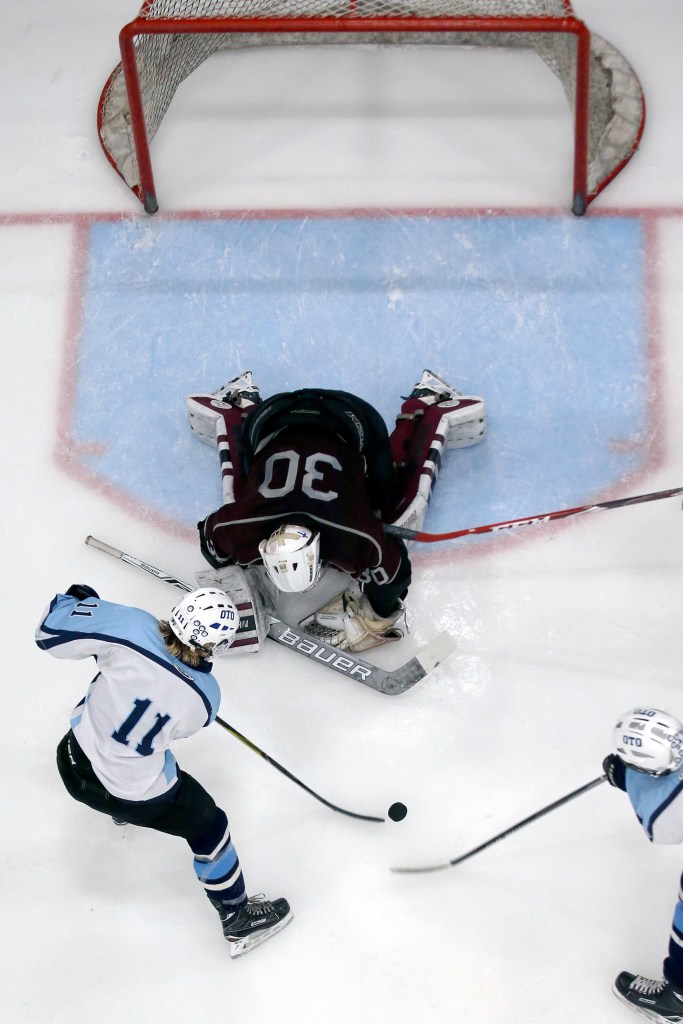 Old Town had a 6-4 edge in shots during the second period and nearly tied it with less than a minute left when Dylan Street’s shot bounced off Bourgoine, leading to a scrum in front of the net before the Rangers ended the threat.