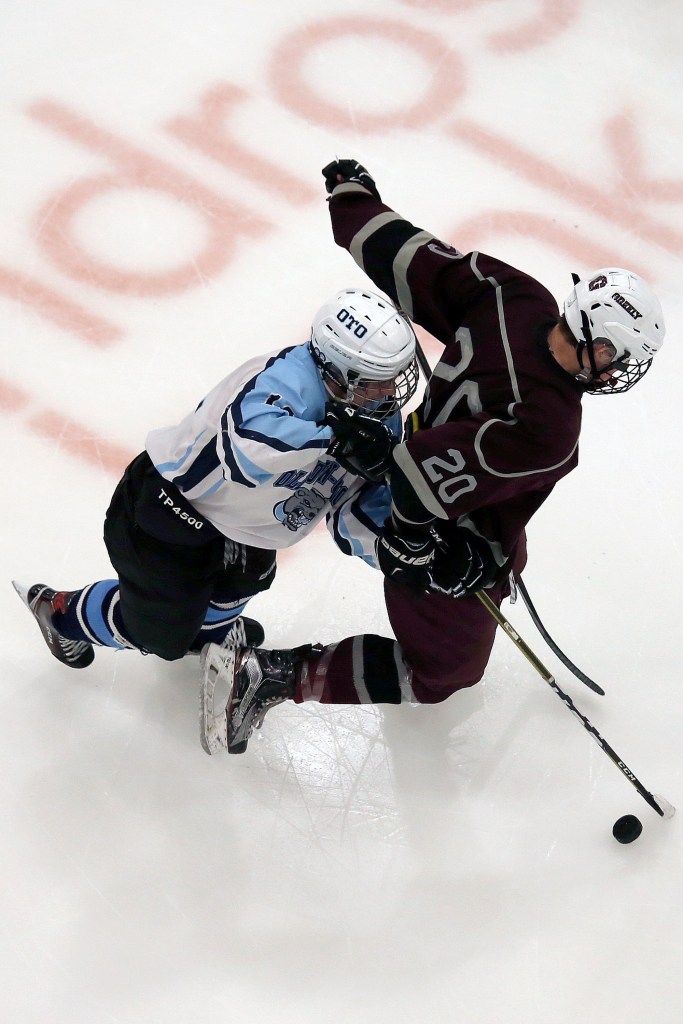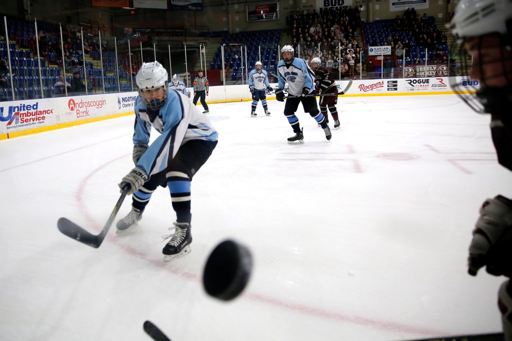 Old Town opened the second period with a brief 5-on-3 advantage and an extended 5-on-4 power play following a minor on Owen O’Connell for elbowing and a major on Andrew Moore for boarding. The Black Bears couldn’t capitalize on either opportunity, nor did they convert on a fourth power play about six minutes into the period.
