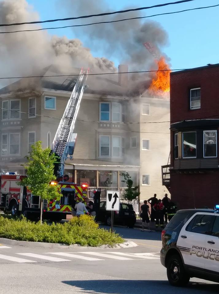 Portland firefighters battled an apartment house fire Tuesday afternoon, during nearly record-breaking temperatures, at 274 Valley St.