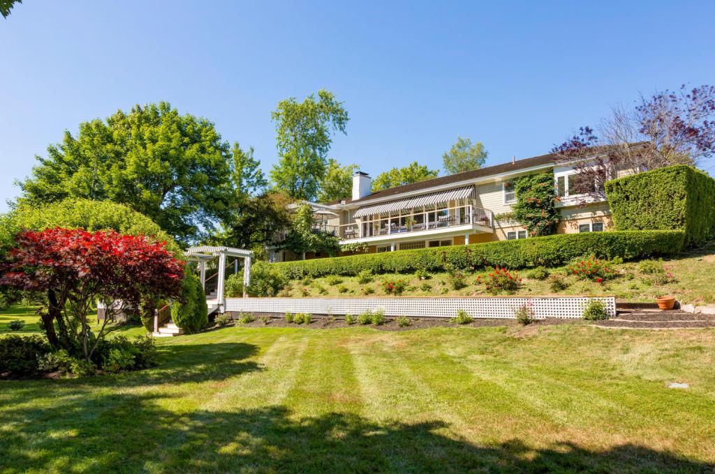 In the summer, back to Portland and to Back Cove: A 1956 ranch that had undergone a stunning transformation inside (15 rooms, lower-level guest suite, lovely coffered-ceiling den) and out, “a 0.75-acre sanctuary of lush lawns and gardens exquisitely landscaped and hardscaped,” with water and cityscape views, and frontage on a tidal stream.