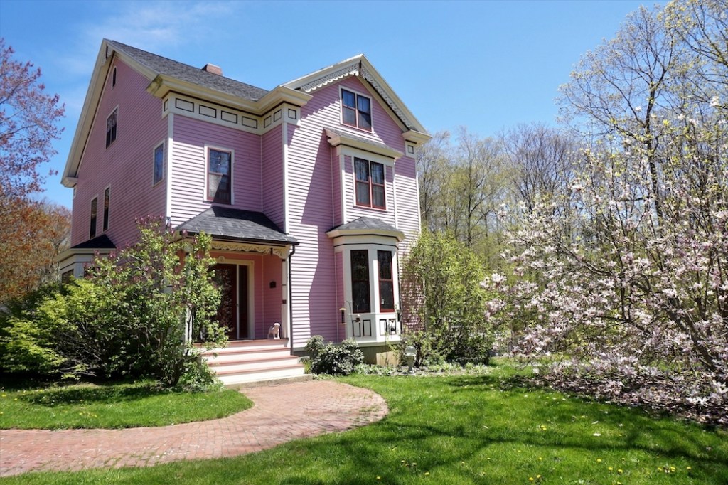 And finally, in York, a home that was built in 1996 for love, by a man for his wife. The Queen Anne c. 1870-style house is based on plans from the Smithsonian, but has two floors of radiant heat. And a wealth of vintage features, e.g. a 1912 cast-iron gas stove and Waterford crystal sconces. And, there’s a cultivated milkweed “monarch nursery.”