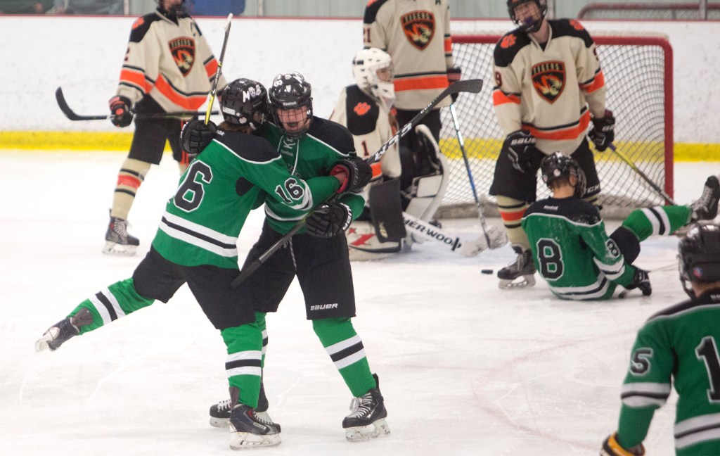 The Tigers went on three straight power plays. Massabesic killed the first one. On the second, Petit wristed in a shot. The rebound came to McSorley and he flicked it in for a 2-1 lead at 7:32.