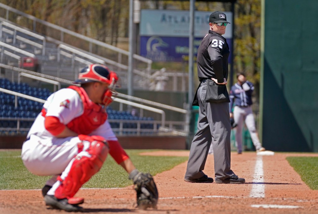 Jacob Metz, the crew chief, is from the Seattle area and is in his third year in the Eastern League. Matt Carlyon, from Pennsylvania, snagged one of the league’s two openings this season. He worked the Class A Florida State League last year.