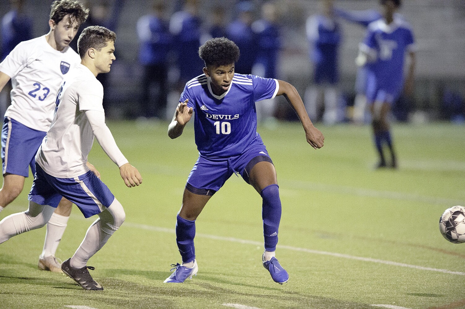 The Blue Devils nearly scored on a set piece of their own with just under six minutes left. Khalid Hersi’s 53-yard direct kick went through a scrum in the box to Leandro Auger, who put a shot past Singleton, but Auger was ruled offsides.