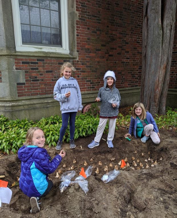 Sixteen students, all Girl Scouts, planted several dozen daffodil bulbs on the grounds of Longfellow Elementary School in Portland last week. Other groups are planning similar events across the state later this week and early next week.