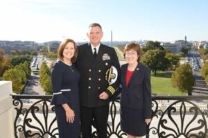 Commander Claude Berube, right, with Sen. Susan Collins and wife Kristin Berube celebrate his promotion to rank of commander during a ceremony in Washington, D.C. Oct. 28