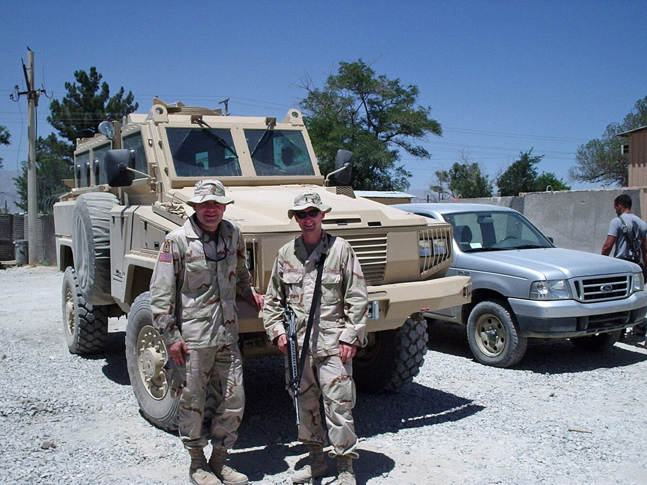 Drew Ludwick, left, and Josh Broder during their military service together at Bagram Airfield-BAF, Afghanistan in 2005. Photo courtesy of Tilson Technology Management