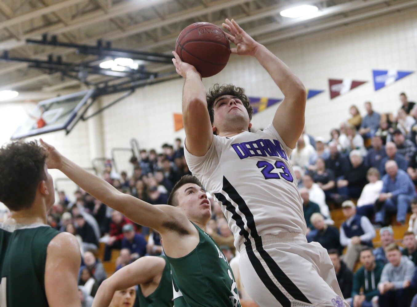 Deering’s Mike Randall scores a key basket during the Rams’ home win over defending Class AA South champion Bonny Eagle earlier this season. Derek Davis / Portland Press Herald