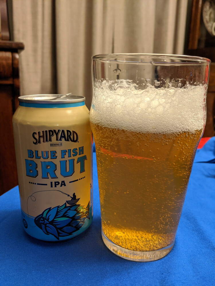 Shipyard Brewing’s newest beer is taking advantage of a recent trend in styles: the brut IPA. Blue Fish Brut is brewed in a style that is modeled after the big, energetic bubbles and the clear look of champagne and prosecco. Although it’s hard to pin down their exact defining characteristics, Brut IPAs are usually brewed with a yeast that provides a clean finish, both in appearance and taste. The style made a big, quick splash in 2019, but it’s hard to tell if it has staying power. Shipyard’s slightly late contribution to the style brings a quick, dry hop taste to your tongue and removes it just as quickly. The effect is a more craft-beer hoppy profile than mass-market lagers, but just as clean finishing and crisp. It is a little bit thinner than a typical IPA and lighter feeling overall, but the effect is a positive one. It gives the little punch of flavor without taking over the show.