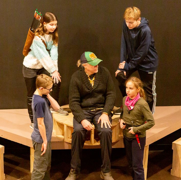 The cast of “Narnia the Musical” at the Royal River Community Players in Yarmouth includes, clockwise from left, Mindy Skates, Moses Padwe, Lara Cakmakci, Elliot Alfreds and Valentine Sheldon, middle. Photo by Randy Billmeier