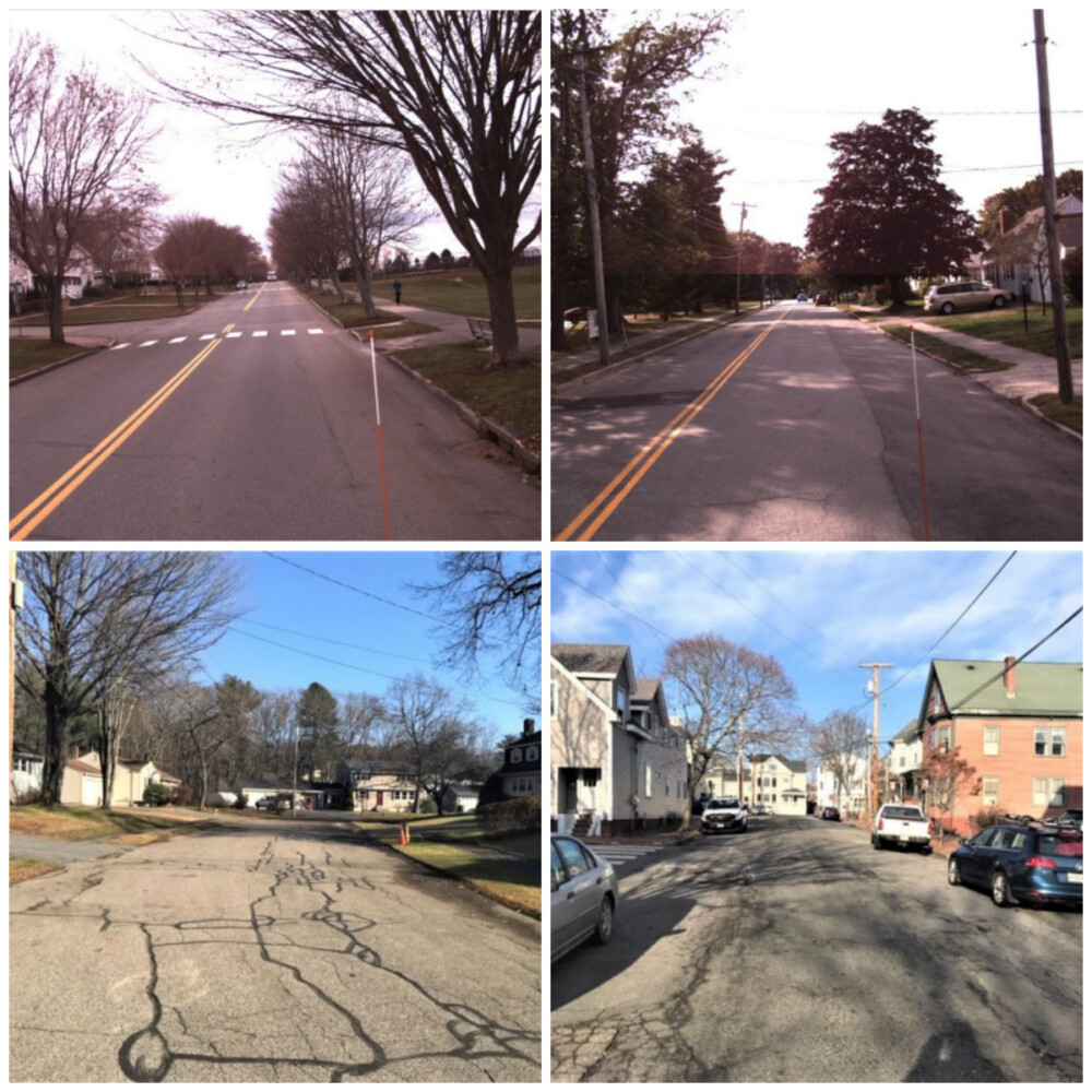 The condition of Portland’s roadways range from excellent on the Eastern Promenade, top left, fair on Walton Street, top right, poor on Longwood Drive, bottom left, and very poor on Munjoy Street, bottom right. Courtesy / City of Portland