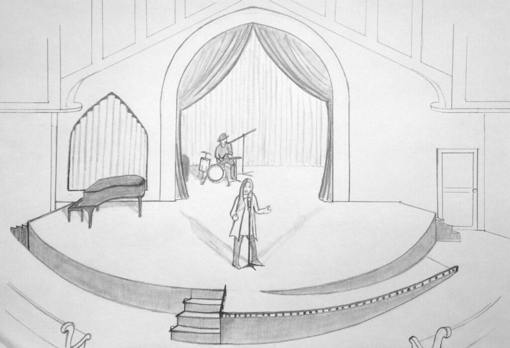 A sketch of interior renovations proposed at First Parish Congregational Church and Freeport and Arts & Cultural Alliance of Freeport for the new Meetinghouse Arts venue at the church. Courtesy Arts & Cultural Alliance of Freeport