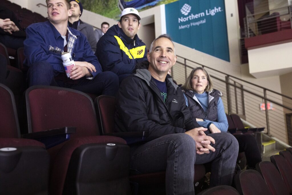 John and Ellen Hart of Cumberland watch their son, Ted, play Sunday for the Mariners against the Brampton Beast. Another son, Brian, is also on Maine’s roster but didn’t play Sunday. Brianna Soukup/Staff Photographer Buy this Photo