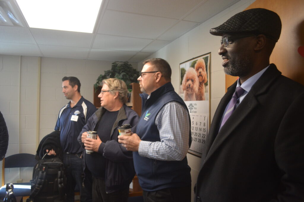 From left, Westbrook City Councilors Elliot Storey, Mike Shaughnessy, Gary Rairdon and Claude Rwaganje attend the official opening Wednesday.. Chance Viles / American Journal