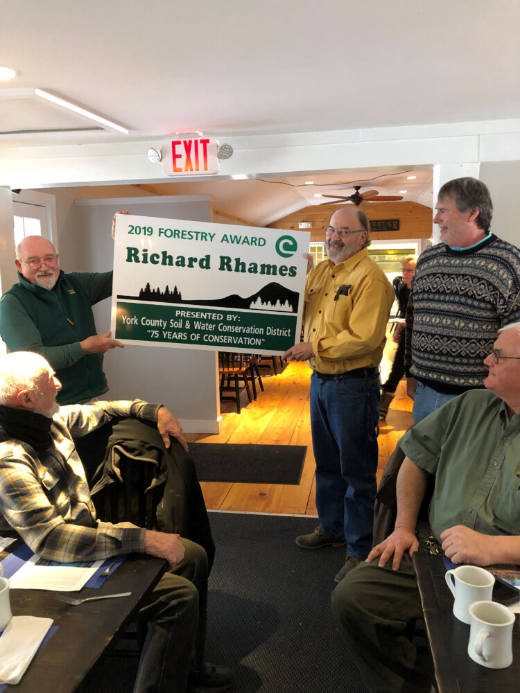The York County Farmers Network and York County Soil and Water Conservation District’s recent winter breakfast meeting culminated the 75th Anniversary of the district. The feature presentation of the meeting was recognition of the 2019 Outstanding Forestry Award to Richard Rhames of Biddeford, and the 2019 Outstanding Conservation Award went to Snell Family Farm of Buxton. Wayne Munroe of the NRCS Scarborough Field Office gave comments.