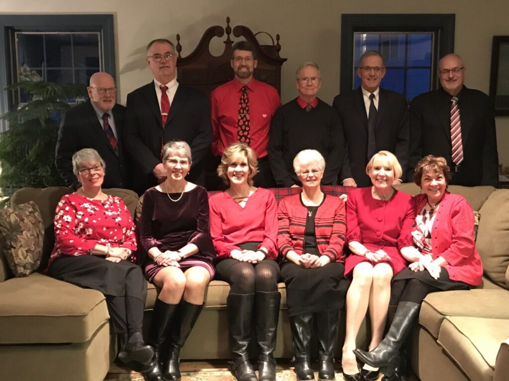 Back left, Peter Tompkins, Alan Sturtevant, Troy Frost, Ron Bickford, Dan L’Heureux , Skip Tompkins. Bottom left, Ellen Tompkins, Bette Sturtevant, Stephanie Frost, Carlene Bickford, June L’Heureux, and Sherry Tompkins gather for their 18th surprise Valentine’s Day celebration before heading to the Muddy Rudder in Freeport for a special”Valentine’s soiree.” Photo courtesy of Dan L’Heureux