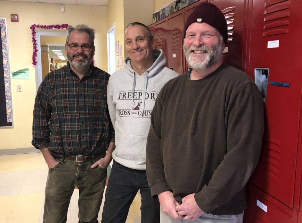 Freeport High School Assistant Principal Charlie Mellon and math and social studies teachers Brian Berkemeyer and Geoff Dyhrberg were among school staff who participated in a beard-growing contest to raise money for a local heating fund. Alex Lear / The Forecaster