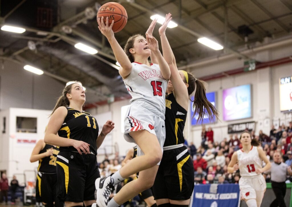 WELLS 49, CAPE ELIZABETH 36: The sixth-seeded Warriors (10-10) never trailed and pulled away in the fourth quarter to defeat the No. 7 Capers (8-12) at the Portland Expo and advance to their fourth straight Class B South final.
