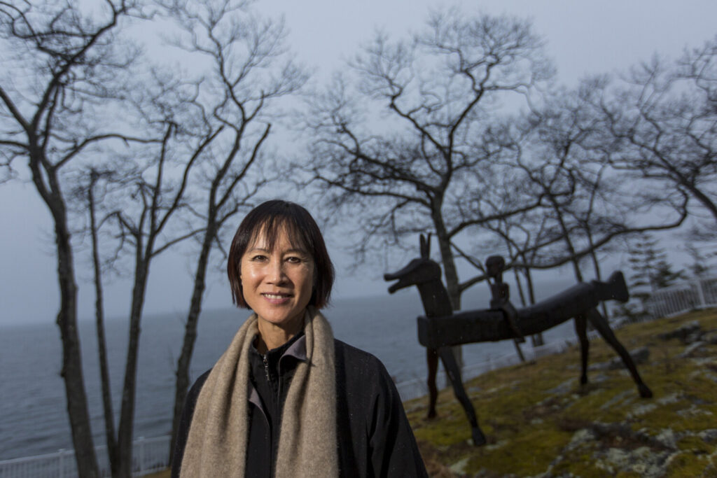 Best-selling author Tess Gerritsen in the backyard of her Camden home, which overlooks Penobscot Bay. Ben McCanna/Staff Photographer
