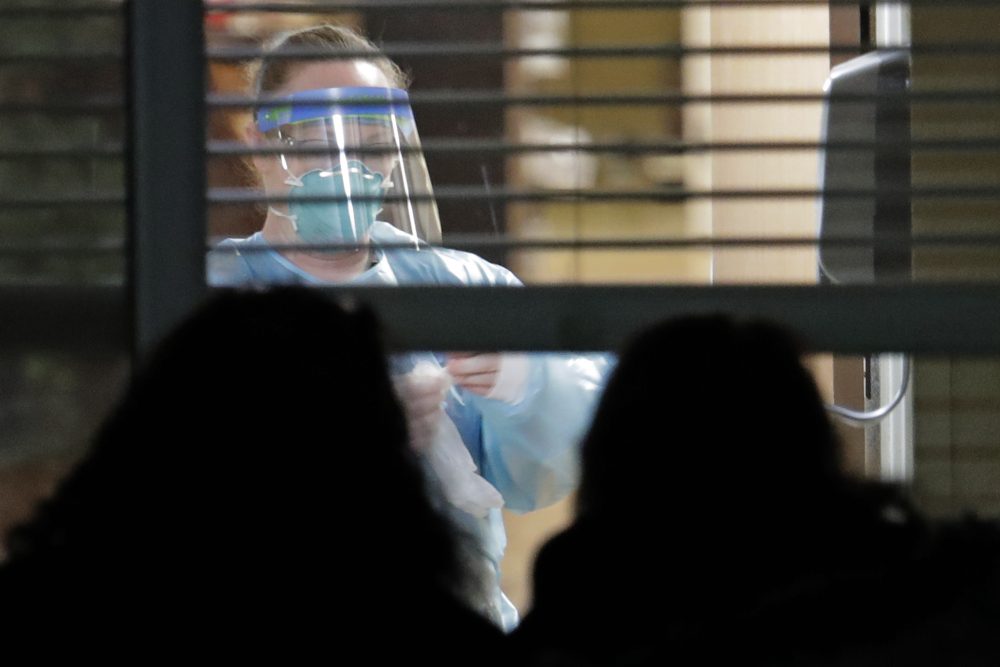 A worker wearing protective gear is seen through a window as she works in a room of a woman who has tested positive for the new coronavirus, as her daughters look in from outside the window, March 10 at the Life Care Center in Kirkland, Wash. Burgeoning coronavirus outbreaks at this and other nursing homes in Illinois, New Jersey and elsewhere are laying bare the risks of the industry’s long-running problems, including a struggle to control infections and a staffing crisis that relies on poorly paid aides who can’t afford to stay home sick. Ted S. Warren/Associated Press