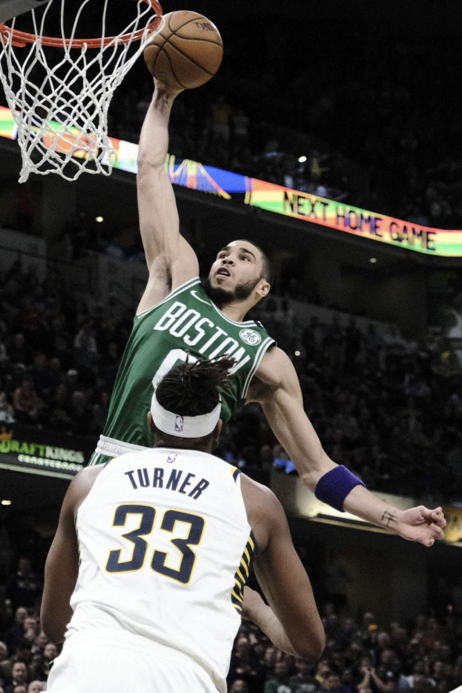 Boston Celtics forward Jayson Tatum scored 30 points on March 10 against the Indiana Pacers. The NBA shutdown a day later and Tatum says he hasn’t touched a basketball since. AJ Mast/Associated Press