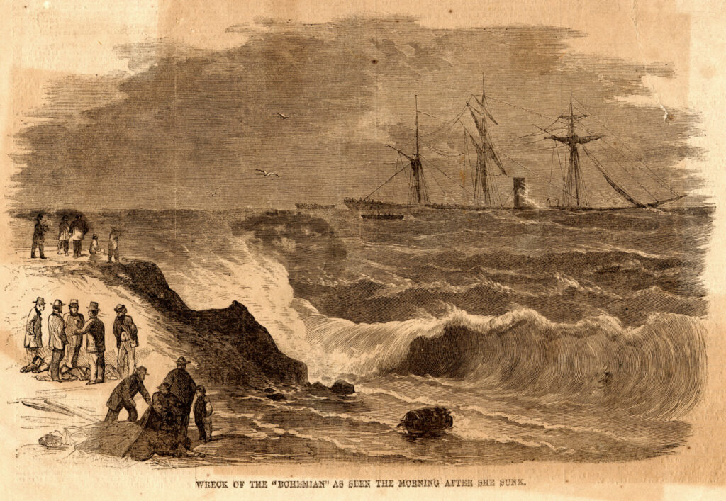 It’s been estimated that 100 ships have gone down off the coast of Cape Elizabeth, including the steamer Bohemian, shown here the morning after it sunk.
