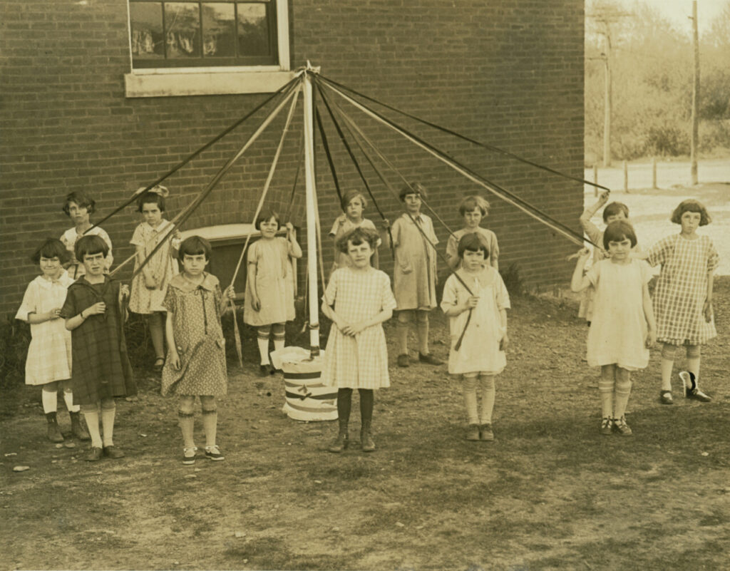 May pole dancers at Willard School in South Portland in 1925 are Lenora Bangert, Romona Rines, Beverly White, Frances Moore, Lucille David, Betty Preble, Hazel Libby, Marcia Haskell, Jane Winslow, Berta Singer, Helen Smith, Louise Tarling, Dorothea Strout, Doris Queen, Natalie Falconi, and Helene Apt.
