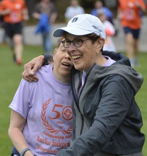 Kristi Schall and her mother, Debbie Schall of Brunswick, wrap up the Run for Independence in 2016. Courtesy of Independence Association