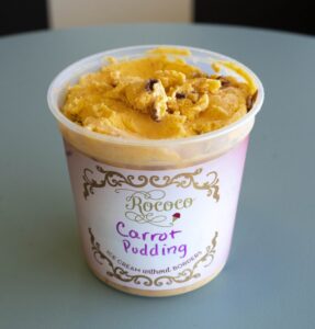 The toughest flavor to re-create was Carrot Pudding. Guptill found the pudding recipe in “Fish, Flesh and Fowl,” Maine’s first cookbook, published in 1877. (“What a name, huh?” Guptill says.) Guptill said the original recipe gave her “nothing to go with. It was literally just a list of ingredients, and then steam in a melon mold for 2-1/2 hours. How do I prep the carrots? Do I boil the carrots? Should we cook the carrots?”