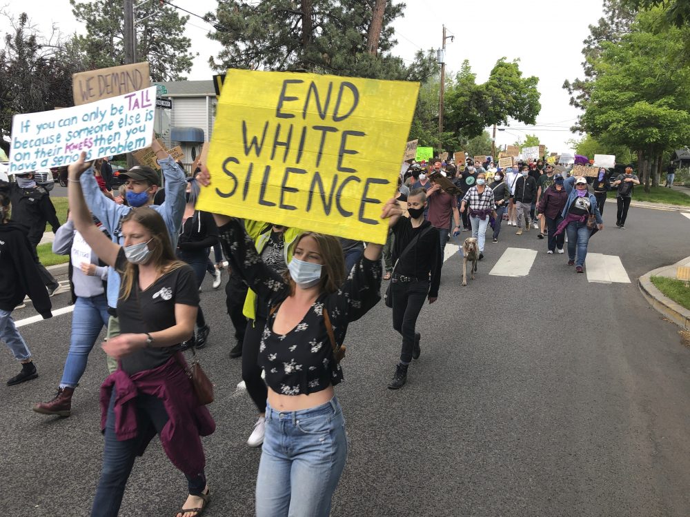 Demonstrators march Saturday in Bend, Oregon, to protest racism and police brutality. Andrew Selsky/Associated Press