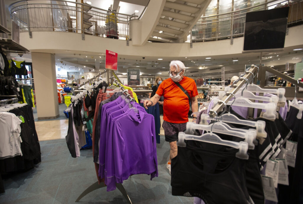 A man wearing a protective mask browses in a Montreal store in Montreal in late May. Bloomberg/Christinne Muschi