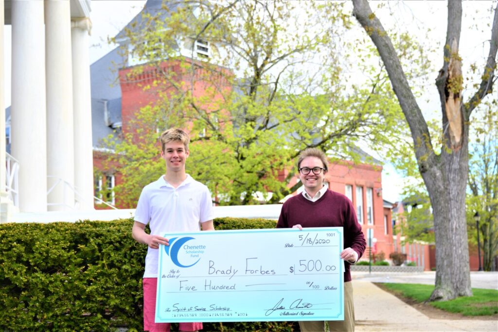Brady Forbes of Saco, was recognized with a $500 scholarship from Senator Justin Chenette’s nonprofit scholarship fund. The Spirit of Service Scholarship is awarded to a graduating senior who has demonstrated a passion for helping others, strong leadership skills, and has worked to improve the community outside of the school’s campus.
