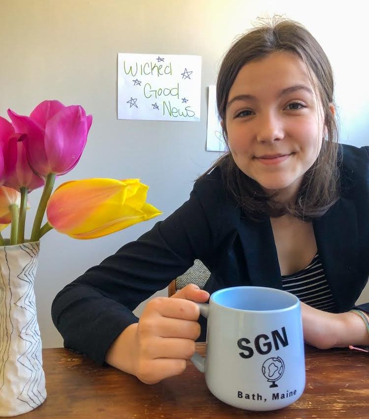 Addie Hinds of Bath, who enters ninth grade this fall at Morse High School, has received national attention for “Wicked Good News Bath Maine,” a webcast she started to promote positive people and happenings in her community. Courtesy Addie Hinds